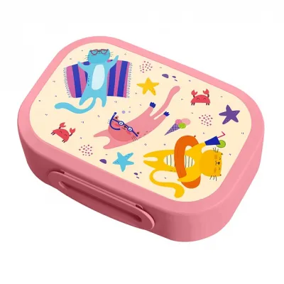 Ланч-бокс "Котики" пластик 0,98л прям 18х13х5см, цв.розовый