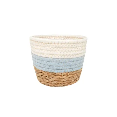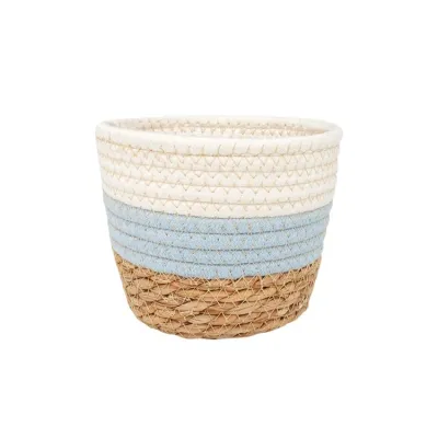 Кашпо плетеное "Танзания" с ручкой d=15,5см, h=13,5см, цв.натуральный/белый