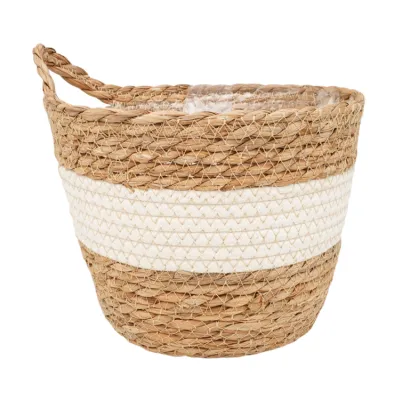 Кашпо плетеное "Танзания" с ручкой d=26,5см, h=23см, цв.натуральный/белый