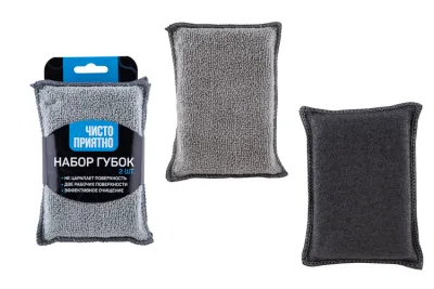 Набор губок двусторонних 2шт, 14х9х3см, цв. серый