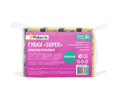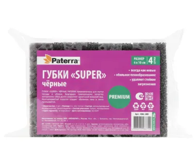"PATERRA" Набор губок для посуды "Super" 4шт, 10х6х3,6см, цв.черный