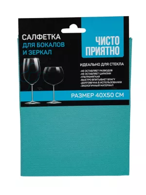 Салфетка для бокалов и зеркал 40х50см, цв.зеленый