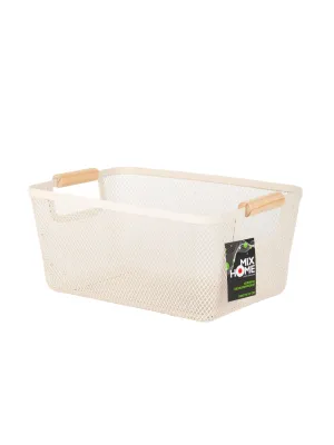 Корзина металлическая с деревянными ручками 25х18х13см, цв.молочный