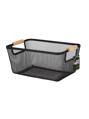 Корзина металлическая с деревянными ручками 33х21х14см, цв.черный