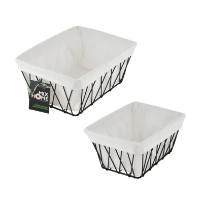 Н-р корзин металлических с текстильной вставкой 2шт, 25х18х11см; 20х15х10см, цв.черный