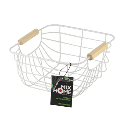 Корзина металлическая с деревянными ручками 20х20х10см, цв.белый