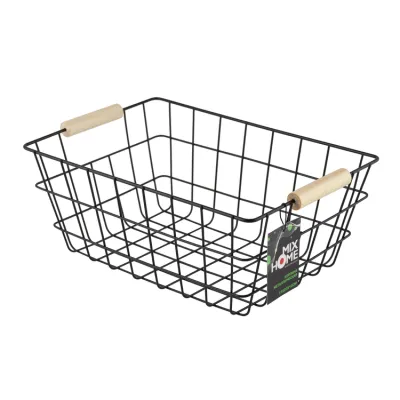 Корзина металлическая с деревянными ручками 31х20х12см, цв.черный