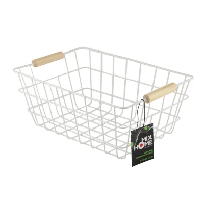 Корзина металлическая с деревянными ручками 31х20х12см, цв.белый