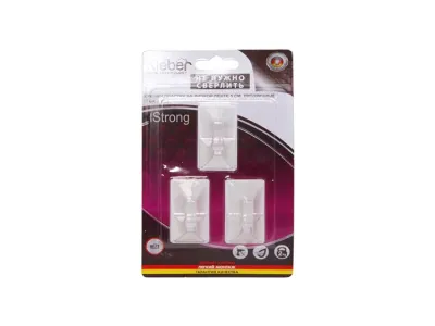 "Kleber" Набор крючков на липкой ленте 3шт. 5см, прозрачные, пластик