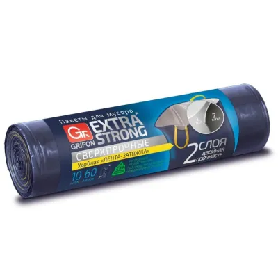 "GRIFON" Мешки для мусора особопроч. двухсл. "EXTRA STRONG" с завязками ПВД 60л, 10шт. 30мкм