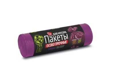 "AVIKOMP" Мешки для мусора особопрочные "Rubber Flex" 60л, 10шт. 22мкм, цв.фиолетовый