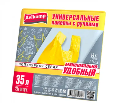 "AVIKOMP" Пакеты универсальные с ручками прочные 35л, 25шт. 13мкм, цв.желтый