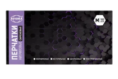 "AVIORA" Набор перчаток нитриловых 100шт., размер М, цв.сиреневый