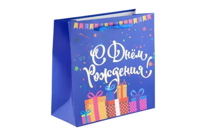 Пакет бумажный "С Днем Рождения!" 25х25х11см