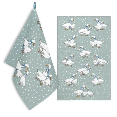 "Гуси и полоска" Набор кухонных полотенец 30х50см, 35х60см, 2шт, цв.серо-голубой