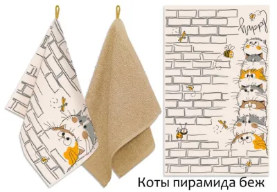 "Коты пирамида" Набор кухонных полотенец 30х50см, 39х60см, 2шт, цв.бежевый