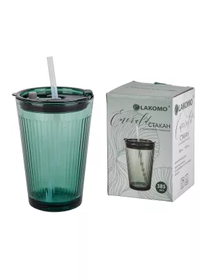 "Emerald" Стакан с силик. трубочкой 385мл, в п.у.