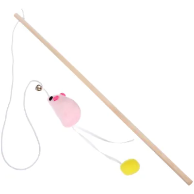 Игрушка-дразнилка на палочке "Мышка с колокольчиком" 70см, цв.розовый