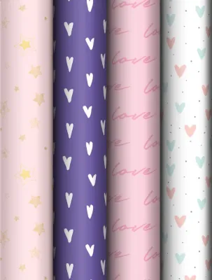 Упаковочная бумага "Love pattern" 100х70см, 4в.