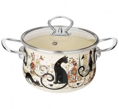 "Agness" Парижские коты" Кастрюля эмалированная 3,6л, 22см
