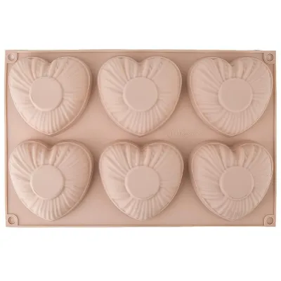 Форма для выпечки 6 ячеек "Сердце" 28,5х18,5см, цв.розовый