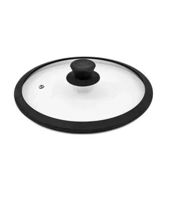 Крышка стекл. 22см с силикон. ободком, низкая, цв.коричневый