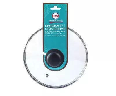 "Tima" Крышка стекл. 20см с метал. ободком, низкая, пароотвод