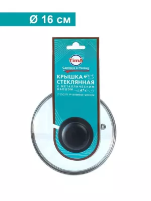 "Tima" Крышка стекл. 16см с метал. ободком, низкая, пароотвод