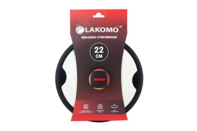 "LAKOMO" Крышка стекл. 22см с силикон. ободком, плоская