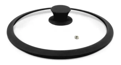 Крышка стекл. 26см с силикон. ободком, низкая, цв.черный