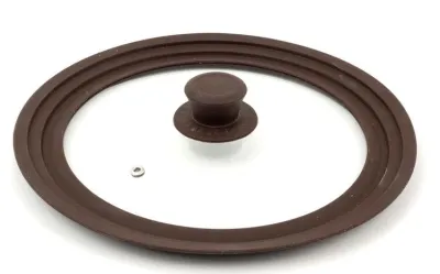 "Tima" Крышка стекл. 24см, 26см, 28см с силикон. ободком цв.коричневый