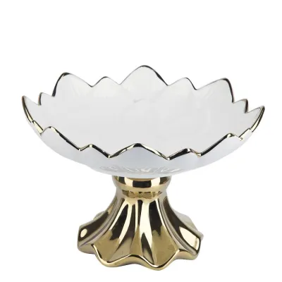 "Маршмеллоу" Блюдо на ножке с золотой отводкой 24,5х24,5х16,5см