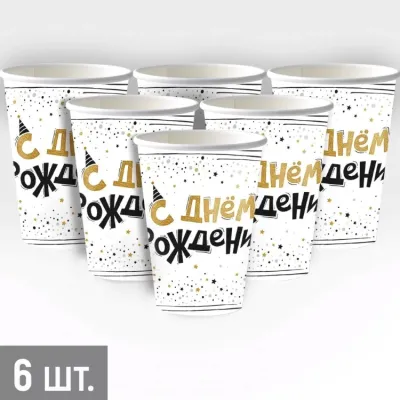 "С Днем рождения!" Набор бум.стаканов 6шт. 250мл