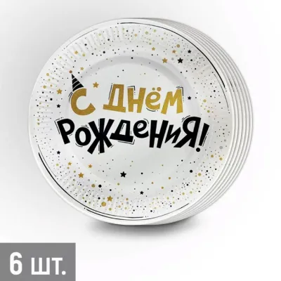 "С Днем рождения!" Набор бум.тарелок 6шт. 18см