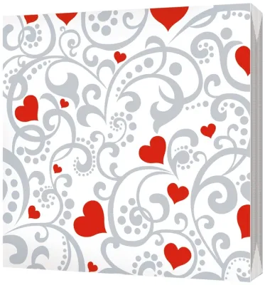 Салфетки трехслойные "Сердечки серебро" 33х33см, 20шт