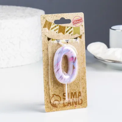 "Белый мрамор" Свечи для торта "Цифра 0"