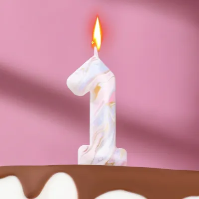 "Белый мрамор" Свечи для торта "Цифра 1"