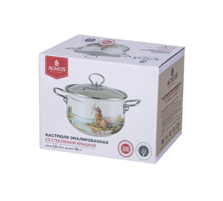 "Agness" Family House" Кастрюля эмалированная 1,5л, 16см