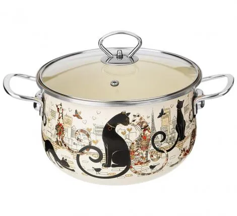 "Agness" Парижские коты" Кастрюля эмалированная 3,6л, 22см