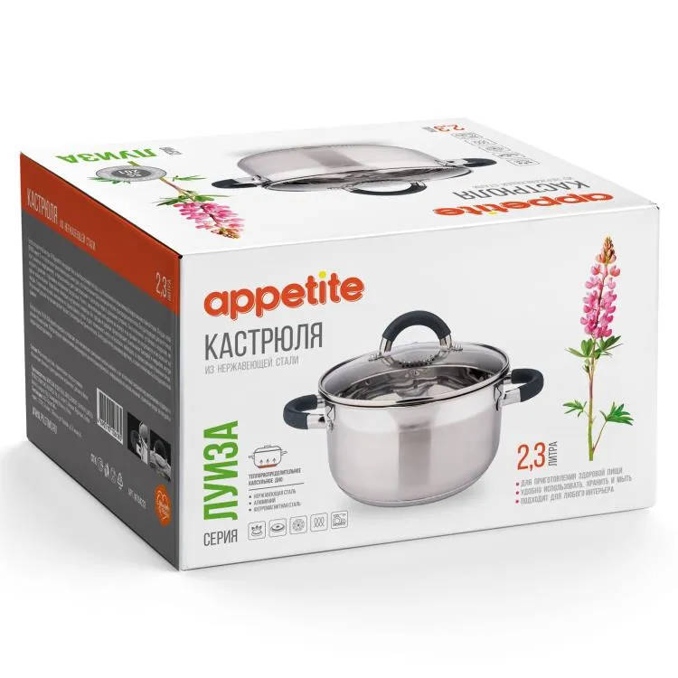 "Appetite" Луиза" Кастрюля с двумя носиками, с крышкой - дуршлаг 4,1л