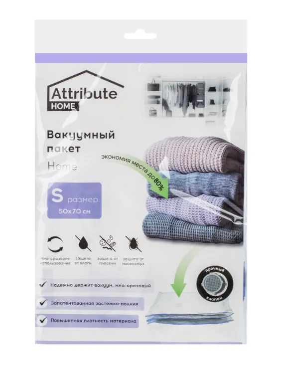 "Attribute" Home" Пакет вакуумный с клапаном S 50х70см