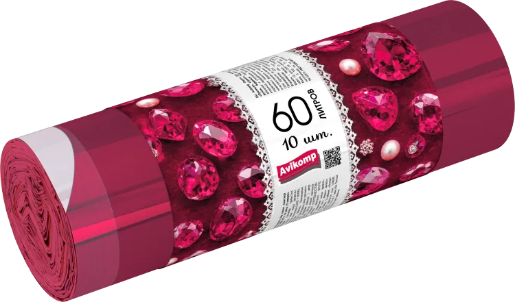 "AVIKOMP" GEM" Мешки для мусора "Гранат" с завязками ПСД, 60л, 10шт. 15мкм, цв.бордовый