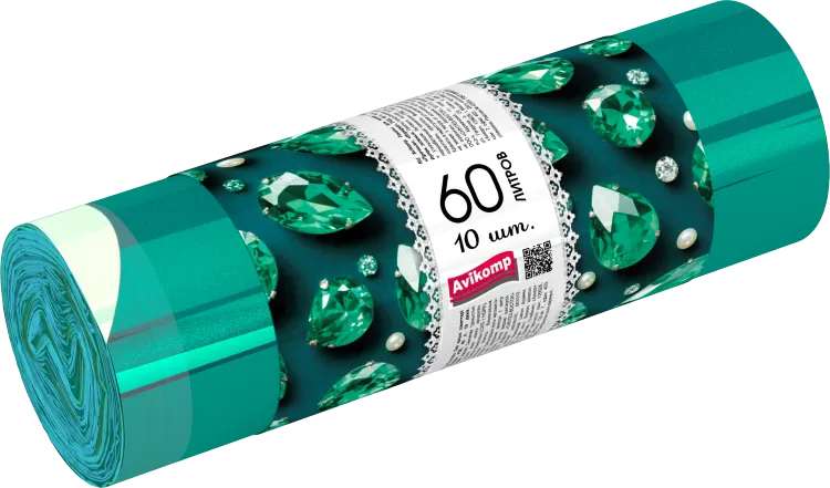 "AVIKOMP" GEM" Мешки для мусора "Изумруд" с завязками ПСД, 60л, 10шт. 15мкм, цв.зеленый