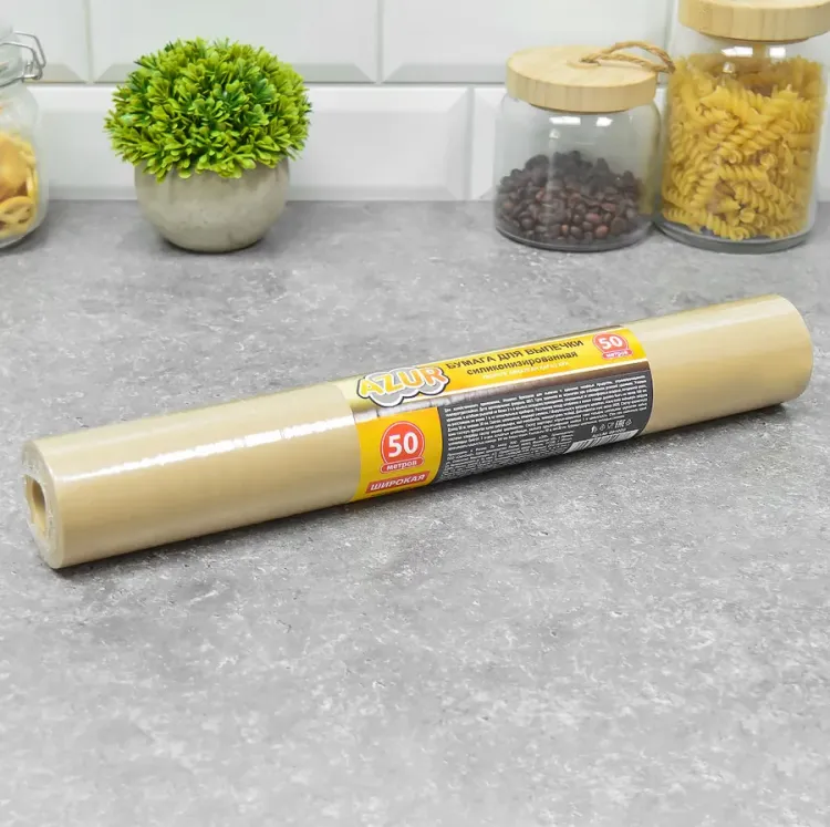 Бумага для выпечки с двусторонним силиконовым покрытием. Не нужно смазывать маслом. Выпечка не пригорает и не прилипает к бумаге. Идеальна для: выпечки и запекании при температуре до 220 градусов, жарки на сковородке или гриле, приготовления в мультиварке и пароварке, раскатывания теста, сервировки блюд, упаковки продуктов. Подходит для многоразового использования. Широкий формат - 38 см. Очень большой рулон - 50 м - хватит надолго!