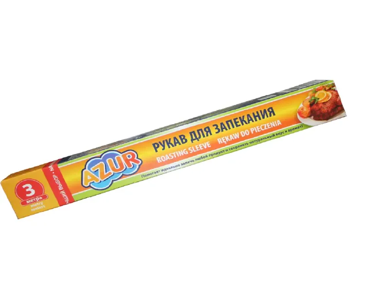 Рукава для запекания Azur позволяют приготовить полезные, низкокалорийные блюда без добавления жира. Сохраняют витамины и микроэлементы, естественный аромат продуктов. Предназначены для использования в микроволновых, электрических и газовых печах. Просты в применении и сохранят Вашу плиту и микроволновую печь чистыми. Идеально подходят для запекания мяса и рыбы. Коробка обеспечивает надежное хранение рукава.