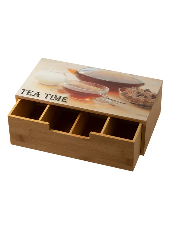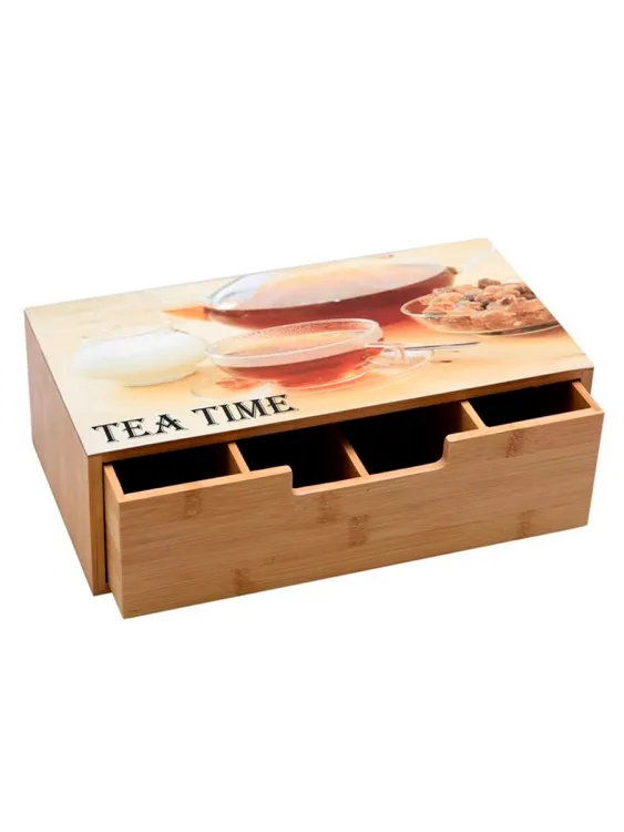 Этот бамбуковый бокс для хранения чая - незаменимый помощник для любителей этого ароматного напитка. В нем 4 секции, что позволяет хранить много разных видов чая в одном месте. Благодаря выдвижной системе, доступ к каждому виду чая осуществляется максимально удобно.