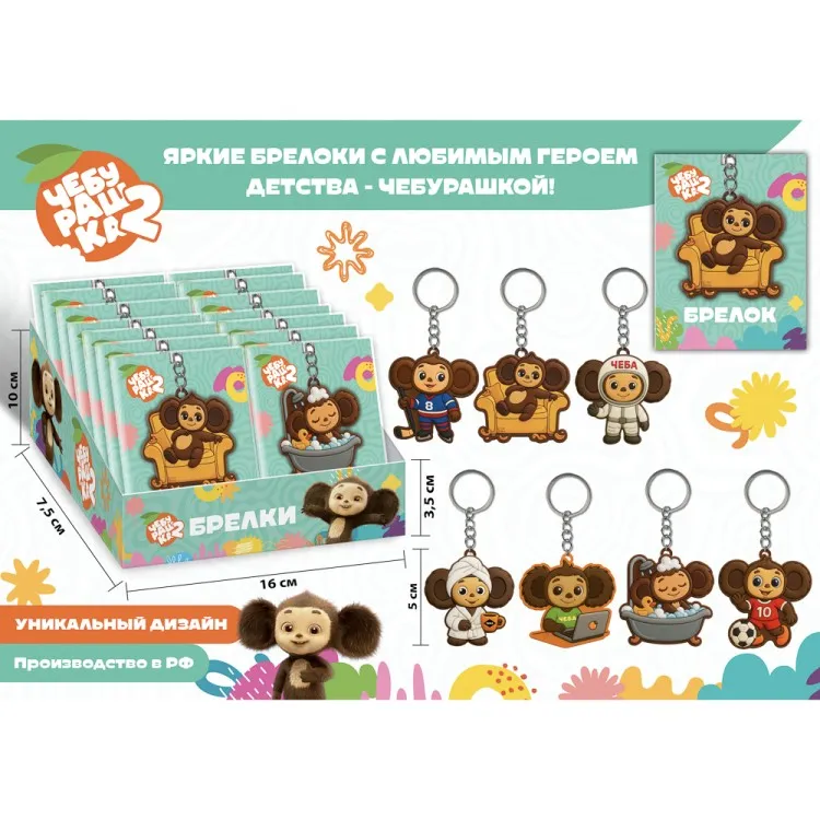 Брелок "Чебурашка" 5х5см, в ассорт.