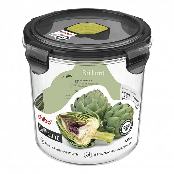 "BRILLIANT" Контейнер тритан 1,15л круг 14х13см цв.черный