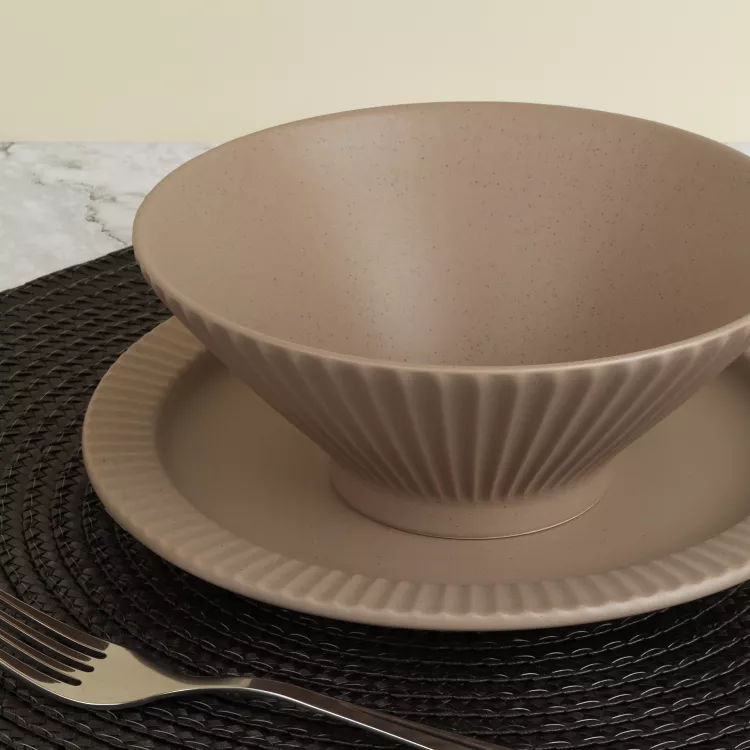 Толстые стенки из керамики сохраняют температуру блюда, позволяя вам наслаждаться его вкусом дольше. Матовая поверхность в серо-коричневом цвете смотрится элегантно и современно.