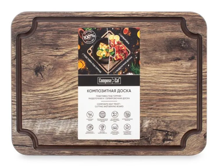 "COMPOSE EAT" Surface"Доска для сервировки и нарезки 24х18х0,4см, цв.дуб мореный